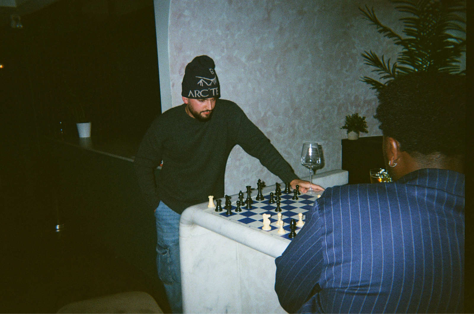 Having begun his career working in Michelin-starred restaurants, Taylor Harrison understands the finer touches of hospitality. This proved crucial to the success of Knightcap Chess Club, the chess event series tucked into social clubs, hotels, and restaurants across Toronto, Miami, Austin, Milan—and soon, Chicago. After seeing the growing interest in the sport following Netflix’s hit The Queen’s Gambit, Harrison reckoned that there had to be a way to combine hospitality and chess. He wanted to break the stigma that chess was nerdy, quiet, intimidating, or awkward.