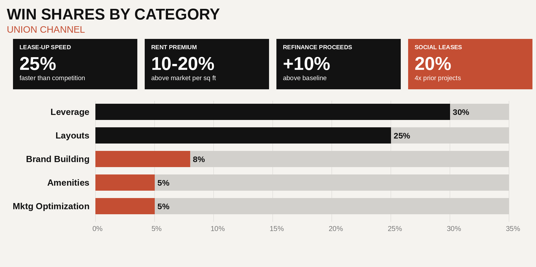Win Shares is a sports book built around a deceptively simple question: where do wins actually come from? Which specific contributions, weighted and attributed, actually added up to the positive result? We apply the win shares framework to every project. Performance is measured across four core areas: leasing velocity, rent premium, retention, and operational efficiency. Win share is the percentage of total value created that we can attribute to a specific decision. We track this to evaluate what happened, and to improve how we approach the next project.