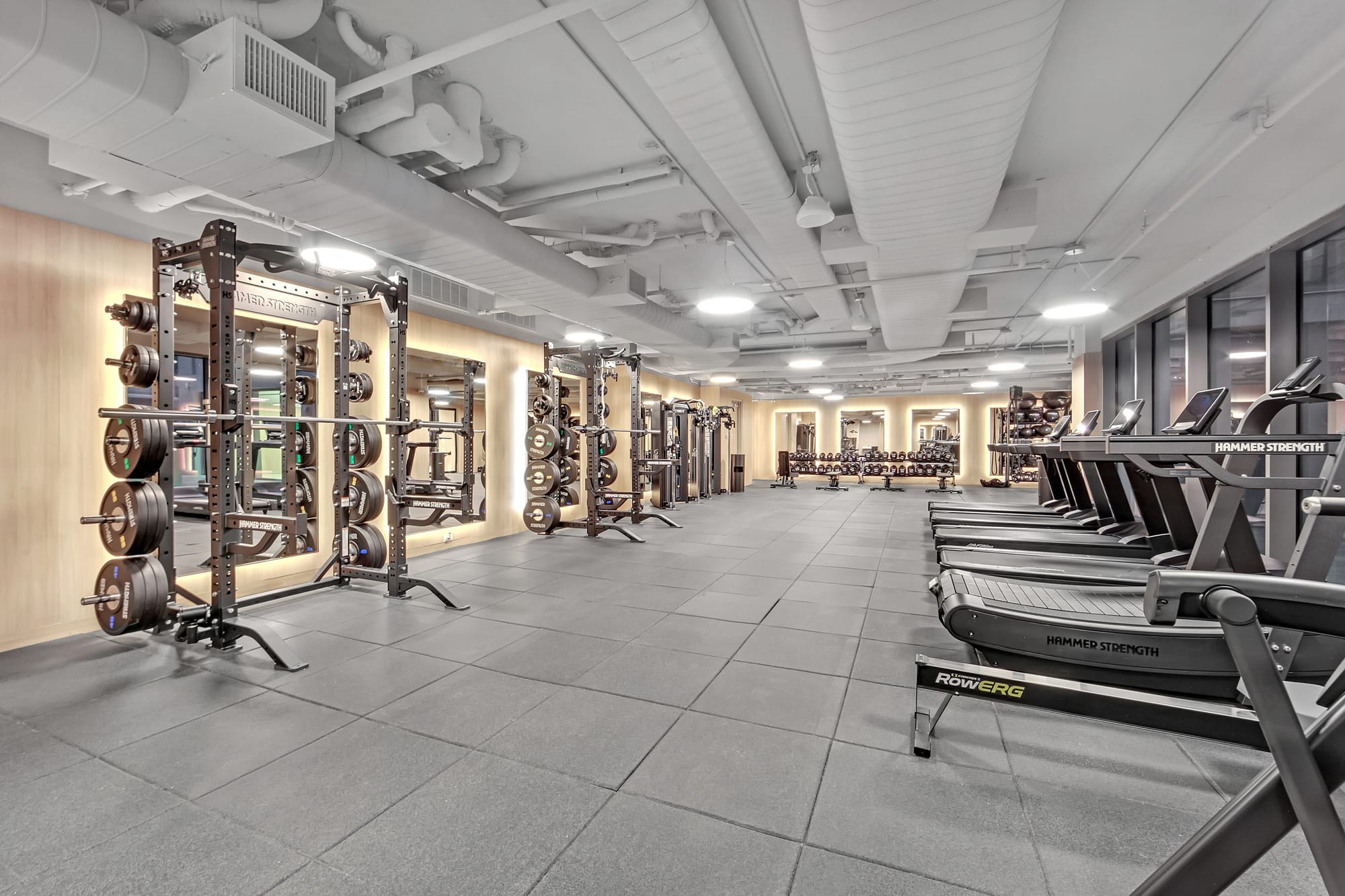 Two decisions shaped the amenity program at Union Channel. The first was the gym; rather than designing it in-house, Charney hired The Wright Fit, a specialist gym consultant, whose layout produced three squat racks, top-tier equipment, and a space that uses every square foot. The data is clear on this: a compelling, premium gym is a reason to pay more in rent.