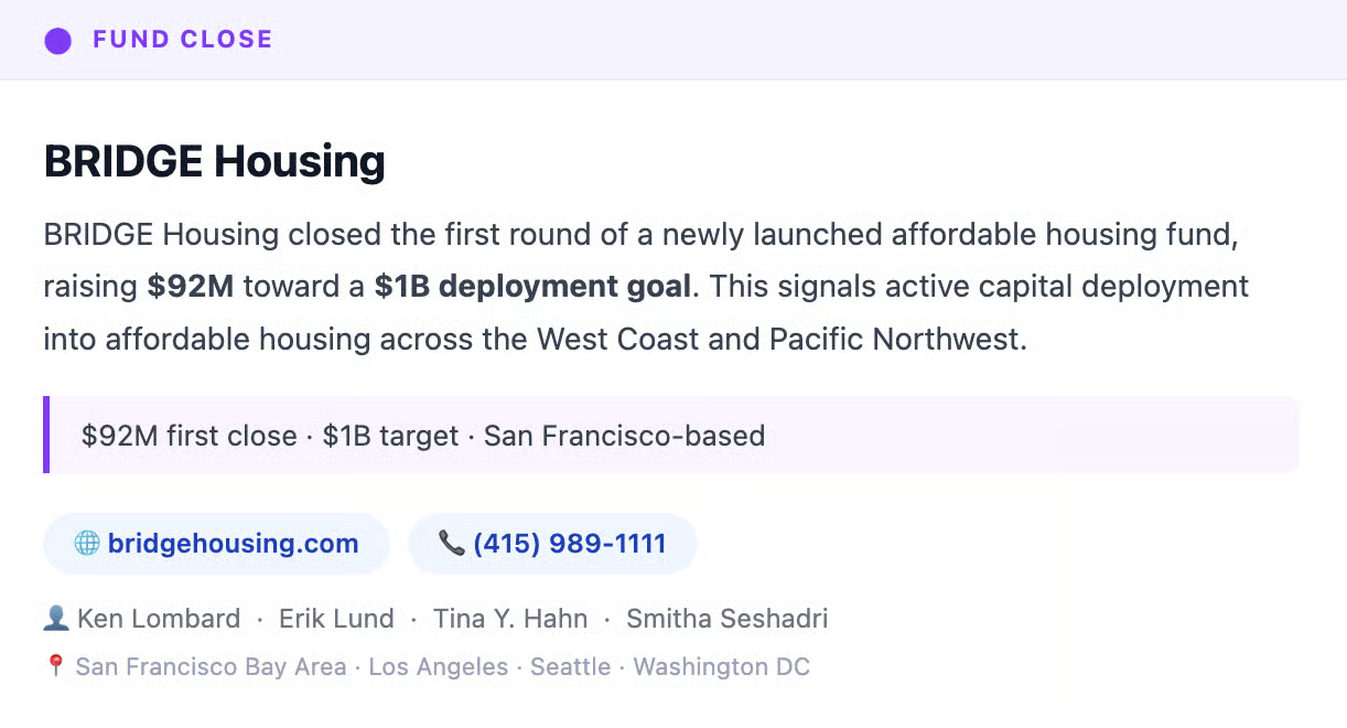 Real-time intelligence for vendors and capital, built around tracking how the real estate industry actually moves.